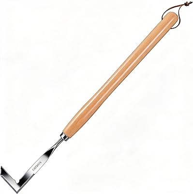 L-shaped, double-sided blade and a lightweight 22-inch frame make the GREBSTK Crack Weeder exactly what it promises: a purpose-built tool for scraping and cutting weeds out of patio stones, driveway cracks and tight sidewalk gaps. The precision-ground, hardened stainless-steel blade is thin enough to slip between pavers without gouging surrounding surfaces, and the serrated edge bites into roots for a clean back-and-forth scrape. At just 0.63 lb with a solid beech handle and a plastic safety cover, it feels nimble in the hand and easy to carry in a tool belt—handy for short, frequent tidy-ups around the yard.